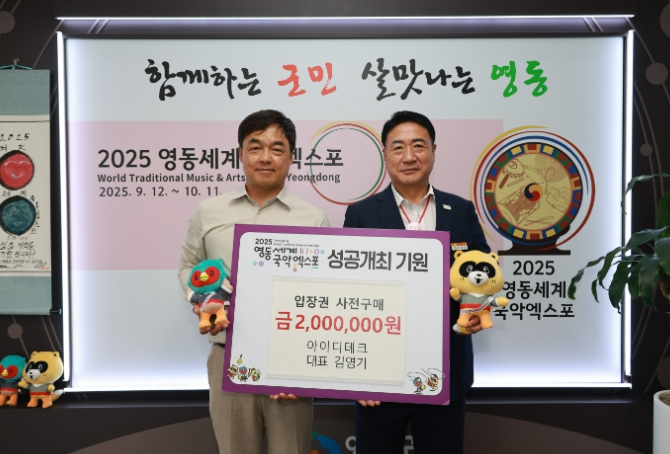 김영기 대표는 “영동군에서 세계적인 국악 엑스포를 준비 중이라는 점이 자랑스럽고, 지역 기업으로서 작게나마 응원할 수 있어 기쁘다”며 “앞으로도 지역사회와 함께하는 기업이 되겠다”고 말했다.