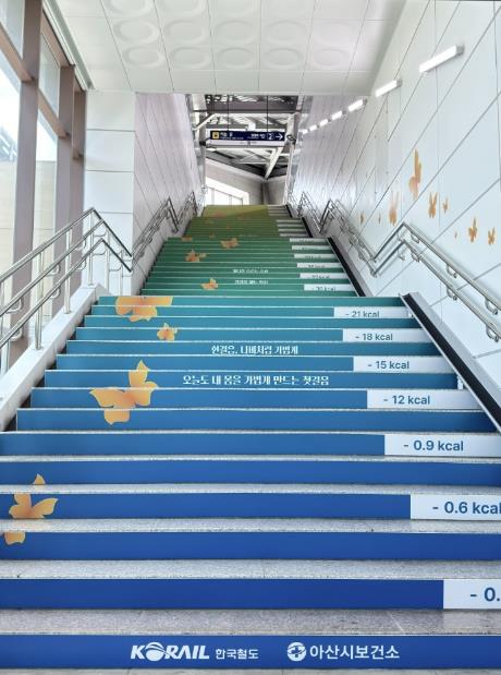 이번에 조성된 건강계단은 탕정역 내 유동 인구가 많은 구간에 설치됐으며, 계단 이용을 유도하는 시각적 요소를 함께 구성하여 시민들이 자발적으로 계단을 이용하고 걷기를 실천할 수 있도록 마련됐다.