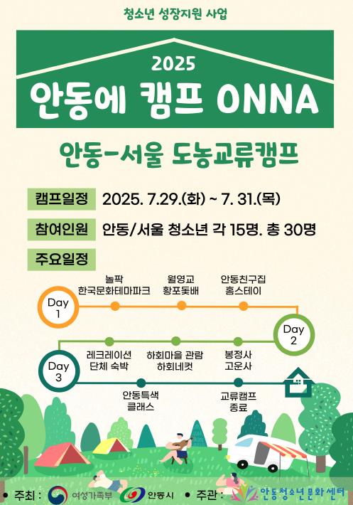 이번 캠프는 2025년 안동 산불 당시 서울 청소년들이 보낸 응원의 손편지에서 시작된 인연을 계기로, 서울 친구들에 대한 감사의 화답이자 교류의 장으로서 마련됐다. 안동시와 서울시 청소년 30명이 함께 참여해 안동의 전통문화 체험과 공동체 활동을 통해 우정을 나누고 지역 문화를 배우는 의미 있는 시간을 보낼 예정이다.