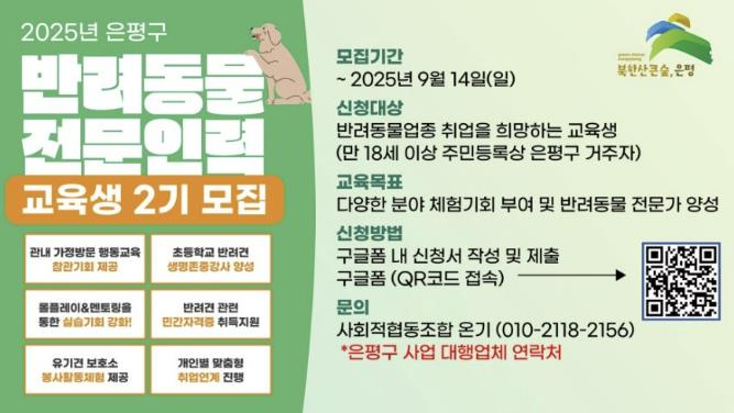 은평구 관계자는 “상반기 교육 과정에도 많은 구민들이 참여했다”라며 “앞으로도 반려동물과 살기 좋은 은평을 만들기 위해 노력하겠다”고 말했다.