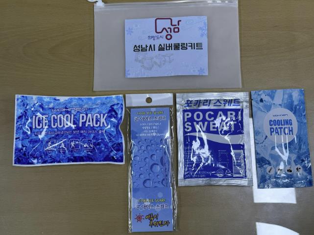 지원하는 쿨링키트는 목 주변 체온을 낮추는 쿨 스카프, 몸에 붙이거나 지니고 다니면 시원해지는 쿨 패치와 쿨 팩, 탈수를 예방할 수 있는 이온 음료(가루형) 등 4개 물품으로 구성됐다.