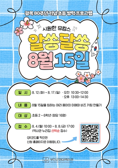 이번 교육프로그램은 ▲광복절의 의미 학습 ▲8월 15일 마인드맵 작성 ▲한글 구슬 열쇠고리(비즈 키링) 만들기 체험 순으로 진행된다.