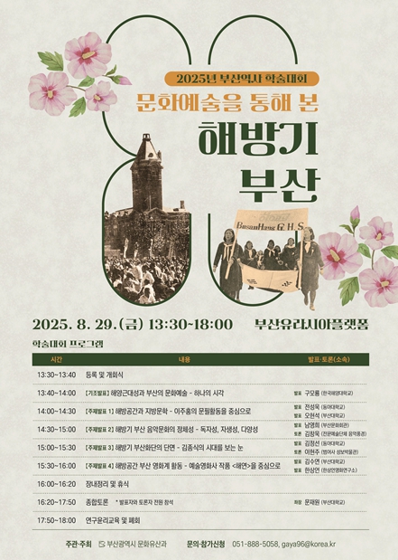 조유장 시 문화국장은 “이번 학술대회는 광복 80주년을 맞이하여 문화예술 작품 속에 투영된 광복 직후 부산의 시대상을 엿보기 위해 기획됐다”라며, “식민통치에서 벗어난 부산사람들의 예술작품이 문화의 정체성에 미친 영향을 재조명하는 발표와 토론을 통해 부산의 문화예술사 연구가 활성화되길 바란다”라고 전했다.