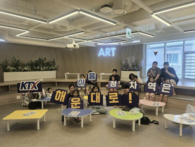 7월 26일 반송2동 어울림문화센터에서 진행된‘문화가 있는 날’ 프로그램에 참여한 가족들이KTX-이음 정차역 해운대 유치한 응원 릴레이에 동참했다.