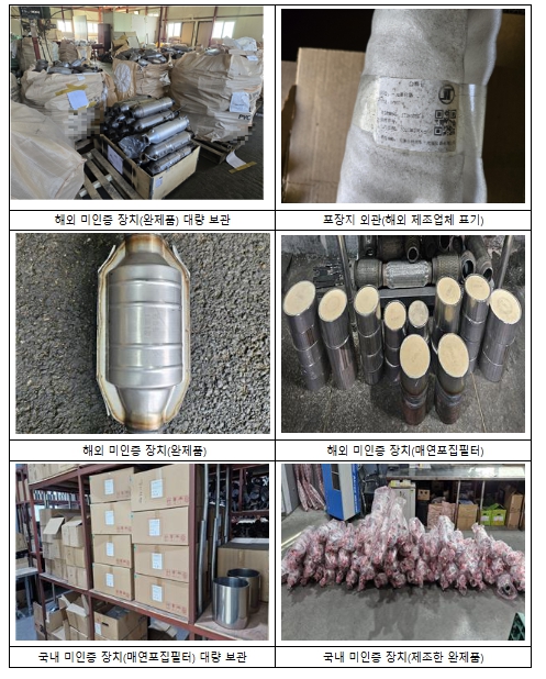 한편, 다른 일부업체는 위 두 가지 저감장치의 핵심 부품으로 사용되는 ‘매연포집필터’를 해외 및 국내에서 구입한 뒤 불법적으로 삼원촉매장치 및매연여과장치를 자체 제작하고, 유통한 것으로 확인됐다.