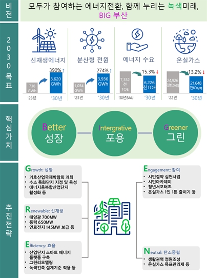 2020년의 6차 계획에 이은 이번 제7차 계획은 '모두가 참여하는 에너지전환, 함께 누리는 녹색미래, 빅(BIG) 부산'을 비전으로, ▲신재생에너지 ▲분산형 전원 ▲에너지 수요 ▲온실가스에 관한 내용을 목표로 수립됐다.