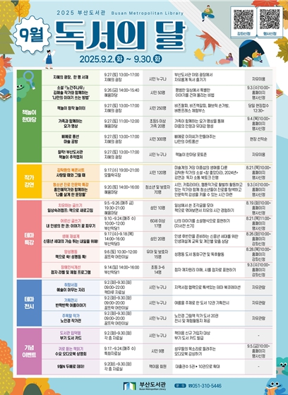 박은아 부산도서관장은 “9월 독서의 달은 책을 통해 시민들이 서로 소통하고 마음을 나누는 소중한 시간”이라며, “가족이 함께 즐길 수 있는 다양한 프로그램에 많은 시민들이 관심과 참여를 가져주길 바란다”라고 전했다.