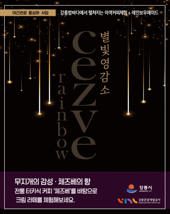 강릉 명소와 색깔을 접목한『체즈베 레인보우』는 밤바다의 감성과 체험을 동시에 즐길 수 있도록 8월 16일까지 총 30회차로 구성했으며 ▲체즈베(Cezve) 커피 ▲별빛 크림아트 ▲별빛 아뜰리에 체험 등 다양한 프로그램을 선보일 예정이다.