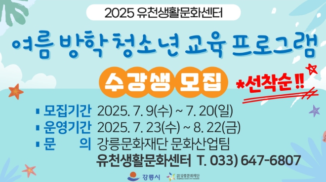 시티트리뷴 - 강릉시 유천생활문화센터, 여름방학 청소년 교육 프로그램 수강생 모집