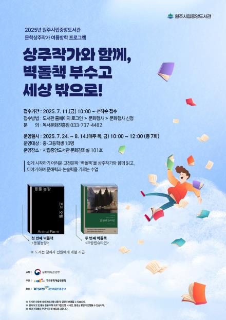 한편 원주시립중앙도서관은 올해 한국문화예술위원회 공모에 선정돼 문학상주작가 지원사업을 운영하고 있다. 이 사업은 전국 문학 시설에 문인들이 상주함으로써 문인들의 창작 여건을 개선하고, 지역 주민의 문학 향유 기회를 확대하는 사업이다.