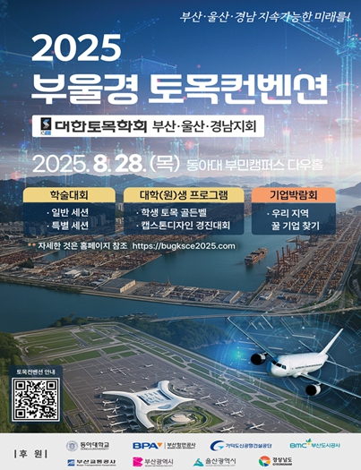 '2025 부울경 토목컨벤션'은 ‘부산․울산․경남 지속 가능한 미래를’이라는 주제로 지역 2천868명의 건설 전문가와 대학생들이 함께 준비하는 종합 학술 축제다.