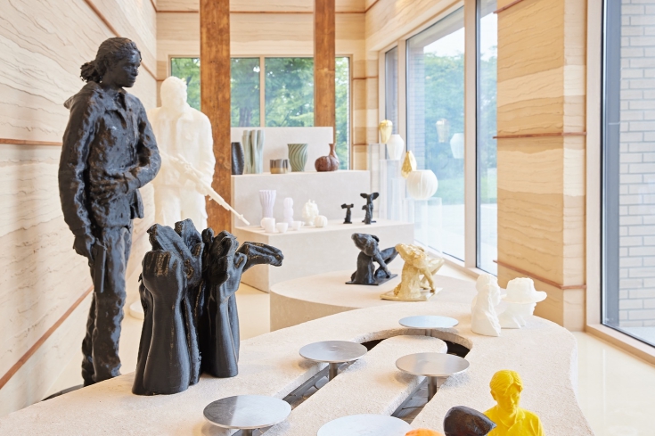 센터는 디지털 기술에 익숙하지 않은 공예인도 쉽게 참여할 수 있도록 ▲인공지능(AI)을 활용한 디지털 프린팅 ▲3D프린터를 활용한 도자 슬립캐스팅 ▲라이노를 활용한 나만의 기물 만들기 등 실습 중심의 맞춤형 교육 프로그램을 운영했다. 센터의 전문 기술자와의 협업을 통해 작가들이 자신의 창작 주제와 방향성에 맞는 독창적인 결과물을 완성할 수 있도록 지원했다.