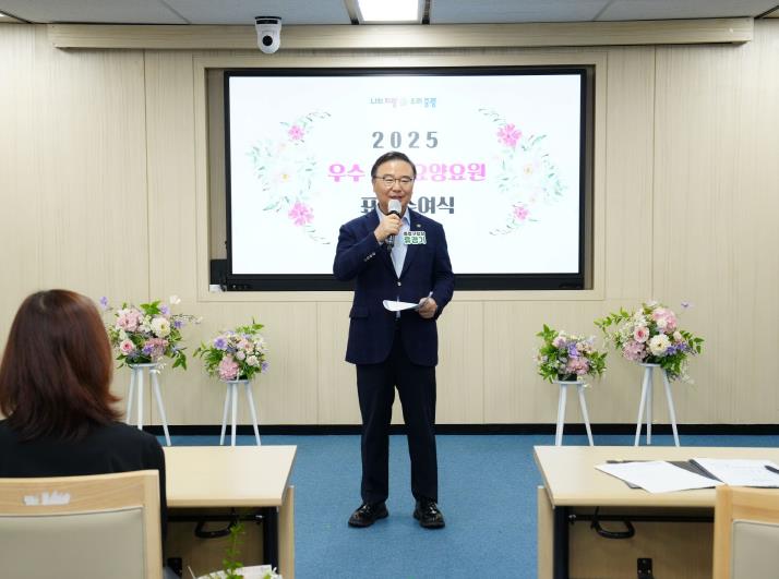 중랑아티스트 ‘달과 별’의 식전 공연으로 문을 연 수여식은 표창장 수여와 수상자 소감 발표, 축사, 단체 기념촬영 등의 순서 진행됐다. 특히 표창을 받은 요양요원들은 전문성과 헌신을 인정받으며, 참석자들로부터 따뜻한 박수를 받았다.