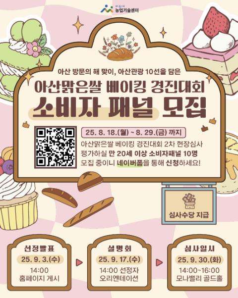 이번 경진대회는 ‘아산 방문의 해’를 맞아 ‘아산관광 10선’과 연계하여 지역 농산물 소비 촉진과 관광 활성화를 도모하기 위해 마련했으며, 소비자 패널 모집 기간은 오는 18~29일까지다.