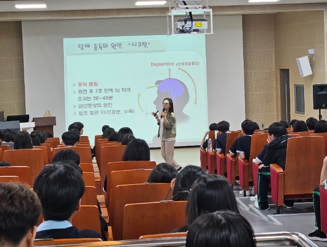 이번 교육은 ▲담배의 주요 유해 성분 ▲일반담배와 전자담배의 차이점 ▲간접흡연의 종류와 유해성 등 청소년이 꼭 알아야 할 내용을 중심으로 학생 눈높이에 맞춰 진행했다.