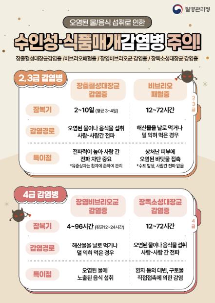 ▲식수는 반드시 끓여 마시거나 생수 사용 ▲침수·정전된 냉장고 속 음식은 섭취하지 말고 폐기 ▲음식은 중심온도 75℃ 이상으로 충분히 익혀 섭취 ▲조리 전·후, 화장실 이용 후 손 씻기 철저 ▲설사·구토 등 증상 발생 시 즉시 의료기관 방문 및 보건소 신고