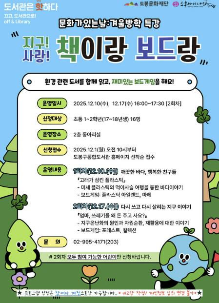 오언석 도봉구청장은 “이번 프로그램 참여로 아이들이 환경 문제에 대해 생각해보고 도서관과 친해질 수 있는 기회가 되길 바란다.”라고 말했다.