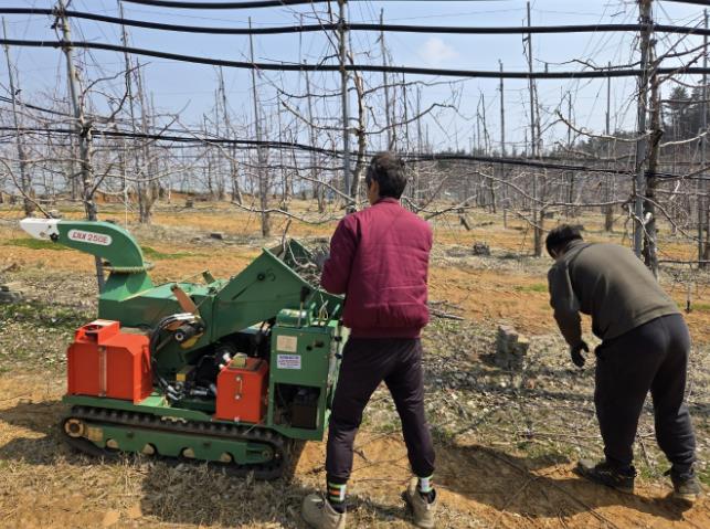 영농부산물 파쇄란 영농 과정에서 발생하는 고춧대, 깻대, 과수 잔가지 등을 불법으로 소각하는 대신 기계로 파쇄해 토양에 환원하는 방식이다. 산불 예방은 물론 농경지 비옥도 증진과 미세먼지 저감에 효과적이다.