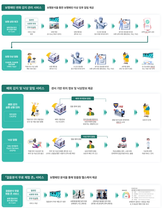 이를 통해 건강 이상이 감지되면 사전에 보호자에게 알림을 제공하고, 낙상·배회 발생 시에는 위치정보와 함께 보호자 휴대전화 앱으로 안내해 고령자의 안전한 일상생활을 지원한다.