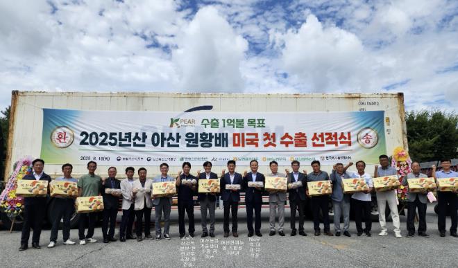 아산원예농협은 오는 19일 아산원예농협 거점산지유통센터(APC)에서 ‘2025년산 아산 배 대미(對美) 수출 첫 선적식’을 개최했다. 이번에 선적되는 물량은 조생종 ‘원황’ 약 98톤으로, 미국 현지 유통업체를 통해 판매된다.