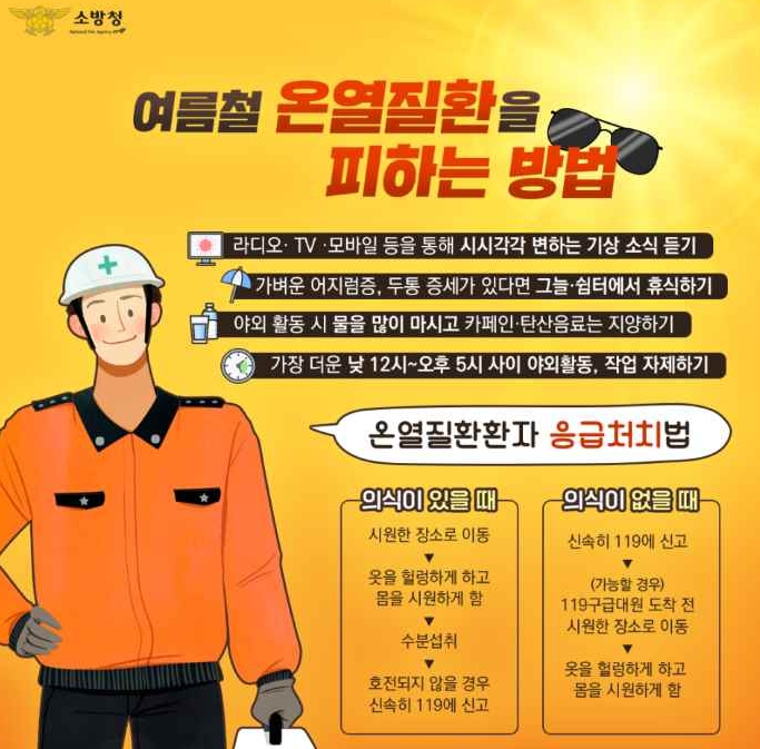또한 소방서는 온열질환 환자 발생 시 응급처치 요령도 안내했다.