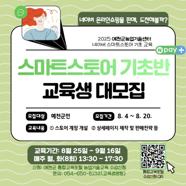 교육 신청은 20일까지 예천군청 통합교육포털 또는 전화 접수를 통해 가능하며, 선착순으로 모집되므로 인원 초과 시 조기 마감될 수 있다. 자세한 사항은 예천군농업기술센터 홈페이지 및 교육경영팀으로 문의하면 된다.