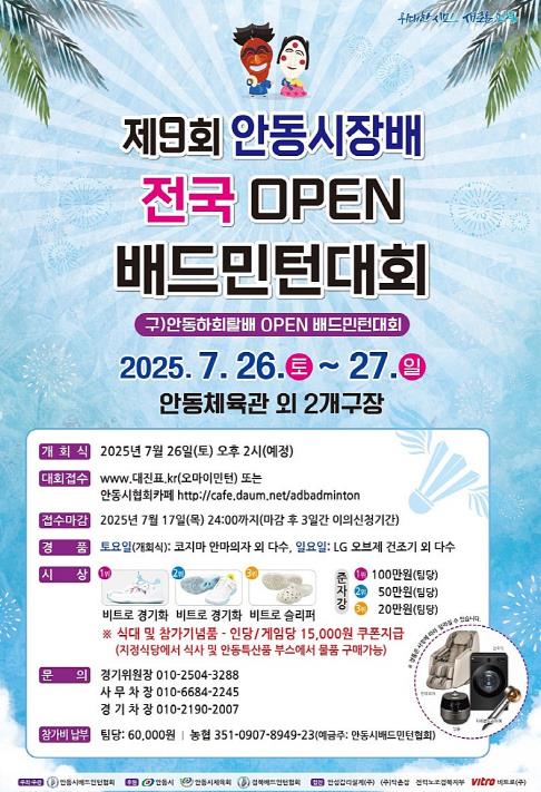안동시 관계자는 “이번 대회를 통해 배드민턴을 사랑하는 전국의 선수 및 동호인들이 함께 어우러져 의미 있는 시간을 보내시길 바라며, 경기장 인근의 낙동강변 산책길과 문화시설도 함께 즐겨보시길 바란다”고 전했다.