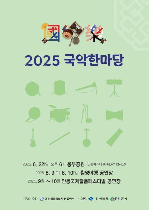 ‘국악한마당’은 우리 민족의 흥과 멋이 살아 있는 전통국악 공연으로, 올해는 총 5회 공연이 예정돼 있다. 지난 6월 22일 K-PLAY 안동페스타 기간 중 첫 공연을 마쳤으며 이번 월영야행 기간 중 두 차례, 이후 9월 안동국제탈춤페스티벌 기간에도 이어질 예정이다.