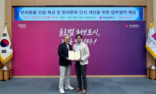 협약식에 안철수 시 푸른도시국장, 오태환 ㈜펫닥 대표이사 등이 참석해 부산을 ‘반려동물 친화 도시’로 성장시키기 위한 상생협력 체계 구축에 뜻을 모았다.