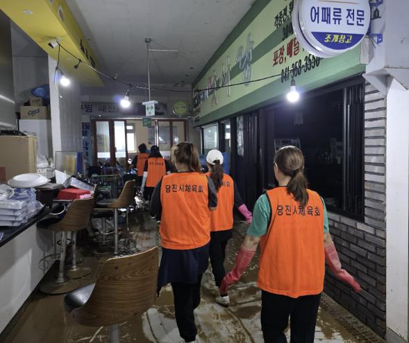 당진 전통시장 내 어시장은 지난해에 이어 올해도 심각한 피해를 겪어 이에 체육회 이사 등을 포함한 체육회 직원들은 피해 현장으로 가 구슬땀을 흘리며 정리정돈에 나섰으며, 생활 터전을 잃은 상인들을 위로하며 복구에 힘을 보탰다.