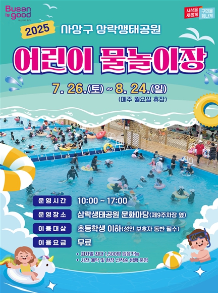 부산시는 오는 7월 26일 낮 12시 30분부터 삼락생태공원 내 어린이 물놀이장을 개장한다고 밝혔다.
