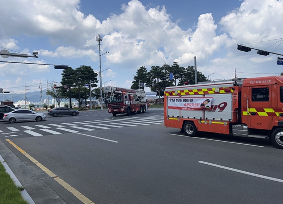 영남대역 ∼경산오거리∼경북권역재활병원∼ 경산소방서까지 약 11km 구간에서는 비상 상황 발생 시 긴급차량이 신속하게 현장에 도착할 수 있도록 경찰차를 선두로 소방차량 5대, 전기 복구 차량 1대 등이 운행하는 소방차 길 터주기 훈련을 실시했다.