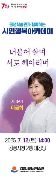 심종승 평생학습관장은 “급변하는 현대사회에서 시민들이 서로를 이해하고 더불어 살아가는 삶의 가치에 대해 생각해보는 시간을 갖길 바라며, 이를 계기로 시민들의 문화 향유 기회를 늘리고 인문학적 소양도 증진시키는 좋은 기회가 되면 좋겠다.”고 말했다.
