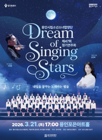 이번 제47회 정기연주회'Dream of Singing Stars'는 객원지휘자 정민희가 지휘봉을 잡아 무대를 이끈다. 노래의 여정을 따라 시간의 흐름을 오가는 음악극 형식으로 구성돼 아이들의 맑고 힘찬 목소리로 과거와 현재, 그리고 미래를 잇는 하나의 서사를 완성하며 관객들에게 깊은 감동과 울림을 선사할 예정이다. 클래식, 동요, K-pop 등 세대를 아우르는 레퍼토리로 공연에 깊이를 더하고 스페셜 게스트로 바이올리니스트 박재현이 함께해 더욱 풍성하고 완성도 높은 무대를 선보일 것으로 기대를 모은다.