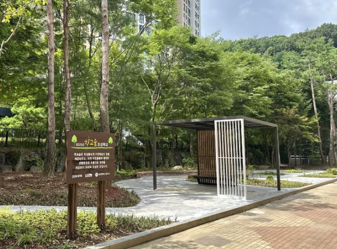시는 교내 방치된 녹지공간 내 노후 시설물을 철거하고, 휴게시설을 만들어 정원식으로 학교숲을 조성했다.