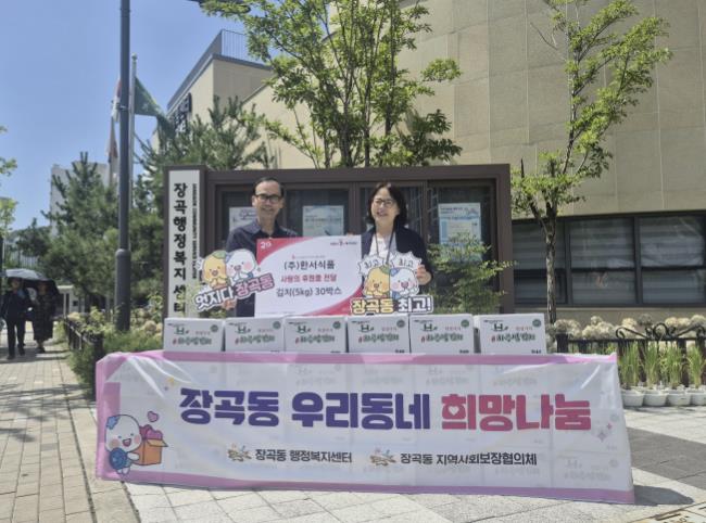 김치 제조 전문기업인 ㈜한서식품은 지난 2월 장곡동 행정복지센터, 장곡동 지역사회보장협의체와 업무협약을 체결한 이후, 관내 취약계층과 위기가구의 식생활 개선 및 안부 확인, 복지 증진을 위한 정기적인 후원을 이어오고 있다.