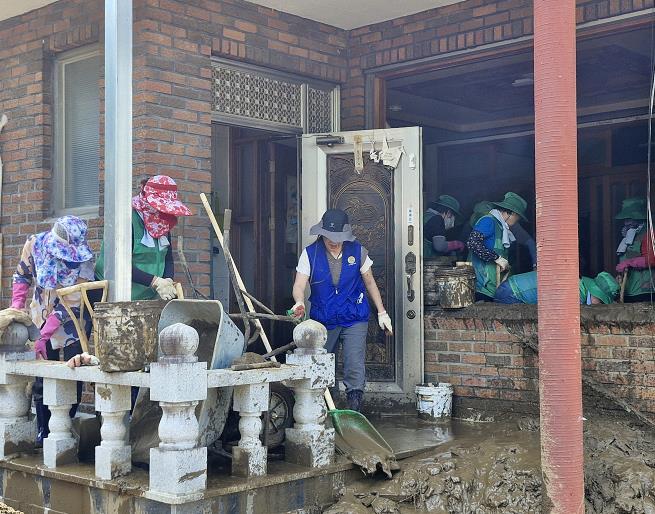 자원봉사자들은 산청군 산청읍 내수리 일원 수해 현장에서 주택에 유입된 토사를 제거하고 쓰레기를 수거하는 등 복구에 힘을 보탰다.