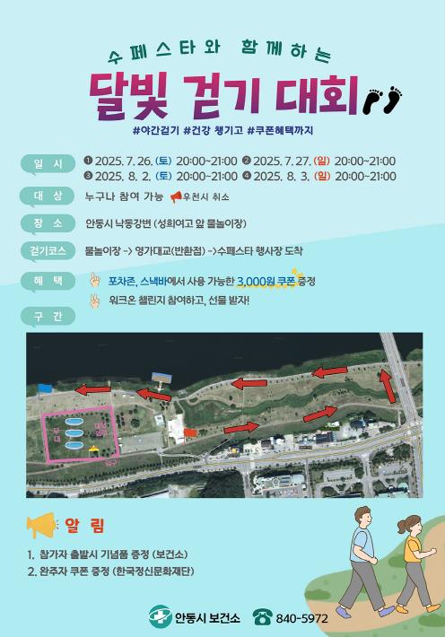 안동시 관계자는 “시원한 물놀이와 함께 여름밤의 낙동강을 걸으며 가족․연인이 함께하는 추억의 시간을 마련하고자 했다”며 “많은 시민이 참여해 힐링과 즐거움을 함께 누릴 수 있길 바란다”고 전했다.