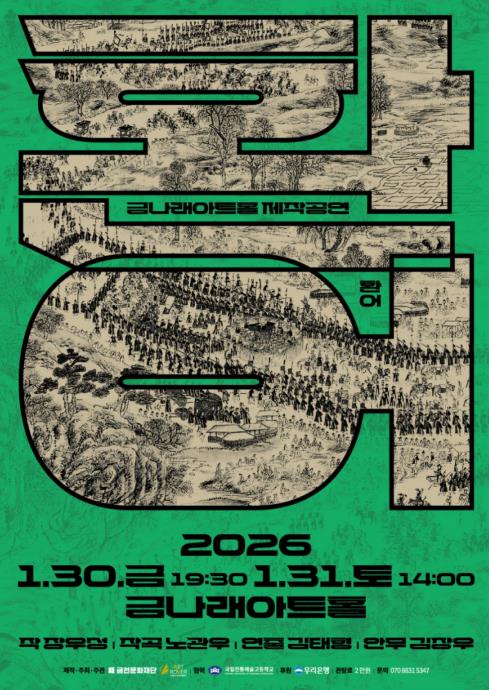공연은 30일 오후 7시 30분과, 31일 오후 2시에 선보인다. 관람료는 전 석 2만 원이며, 금천문화재단 누리집 또는 놀(NOL) 티켓에서 예매할 수 있다.