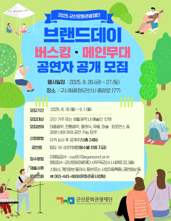 자세한 내용은 군산문화관광재단 누리집 공지사항을 참고하거나, 문화관광사업팀으로 문의하면 된다.