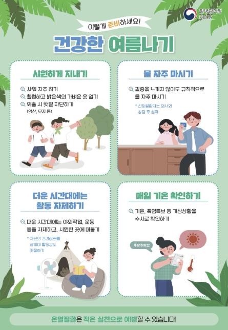 이형정 시흥시보건소장은 “온열질환을 예방하기 위해서는 자주 샤워하고, 고온 환경을 피하고 시원한 옷을 착용하는 것이 중요하다. 온열질환 발생 시에는 즉시 시원한 장소로 이동해 수분을 섭취하고, 증상이 심할 경우 즉시 119에 신고해야 한다”라고 당부했다.