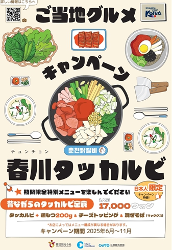 금번 한국관광공사 선정 “미식 30선” 연계 방한 관광 활성화 기획은, ‘옛날 닭갈비’, ‘닭내장’, ‘치즈사리’, ‘막국수’를 방한 일본 관광객 혼자서도 즐길 수 있도록 한국관광공사와 강원관광재단이 공동 기획한 일본 관광객 한정 홍보 콘텐츠이다.