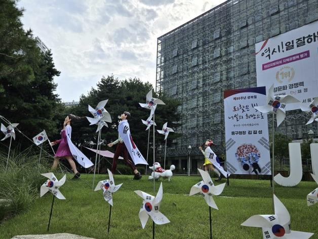 이번 달 31일까지 중구청 1층 로비에서는 광복 80주년 기념 전시회가 열리고, 광장에는 태극기 팝업 포토존이 마련된다.