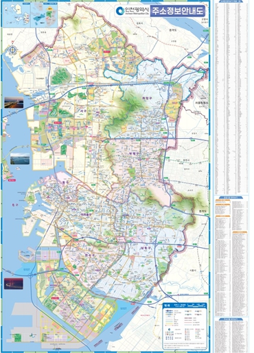 또한 인천시 전체 도로명을 한눈에 볼 수 있도록 주소정보 관리시스템 자료를 반영하여 제작됐다. 주요 내용으로는 ▲바다 관광객을 위한 ‘I-바다패스’ 이용 안내, ▲역사적 인물과 문화적 의미를 반영한 명예도로명, ▲야간 이용이 어려웠던 산책로 등 취약지역에 설치된 조명형 주소정보시설(에움길), ▲인천과 수도권을 연결하는 전철 노선도 등이 함께 수록했다.