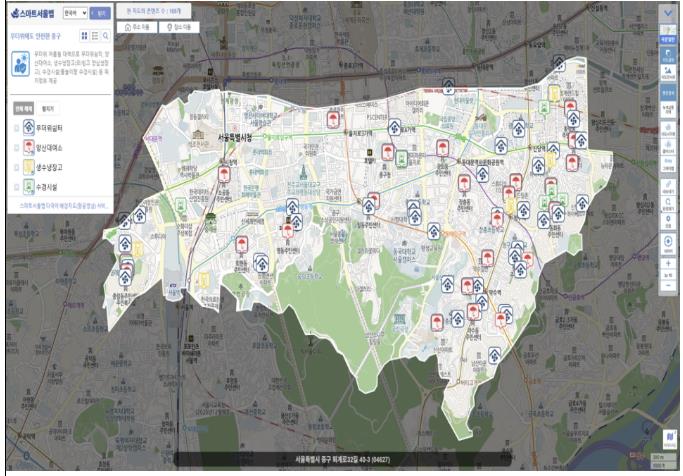 이번 서비스는 ‘내편중구 스마트 테마지도’ 구축 첫 단계로 진행되고 있다. 중구는 올해 초 남산자락숲길 동별 출입경로와 숲길 내 체육시설, 휴게시설 등의 정보가 담긴 지도를 구축해 제공하고 있다. 앞으로도 우리동네 표준지, 이순신길을 포함한 명예도로 등을 테마지도로 구축해 주민들에게 제공할 예정이다.