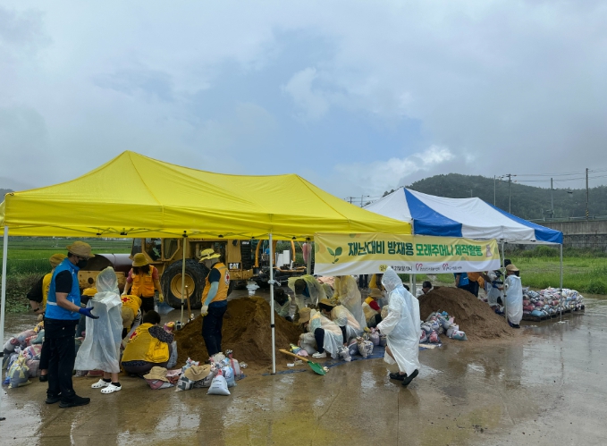 이번 활동은 집중호우, 침수 등 자연재해에 선제적으로 대응하기 위한 지역공동체 차원의 예방사업으로 총 1,000개의 모래주머니(개당 8kg)가 제작됐다.