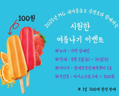 이번 이벤트는 ‘100원 아이스크림 판매’ 방식으로 운영되며, 250만원 상당의 후원을 받아 하루 500개 한정 수량으로 진행된다.