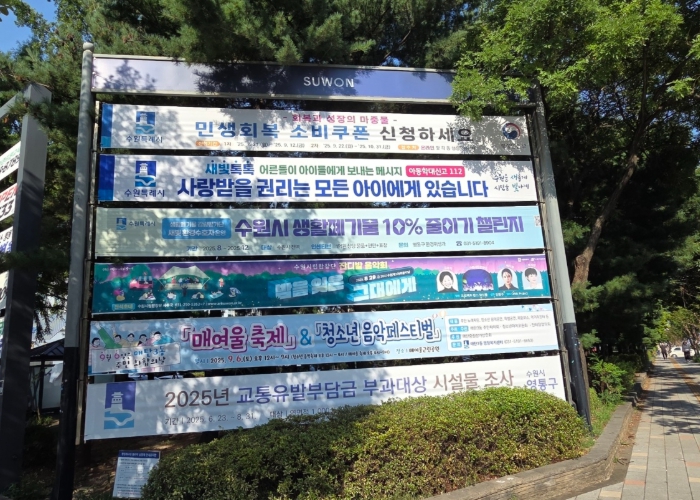 수원시는 2학기 개학 시점에 맞춰 이 문구가 적힌 현수막을 제작하고, 수원시청 앞 올림픽공원, 4개 구청 앞 지정 게시대, 보행과 차량 통행이 많은 주요 지점 15곳에 설치한다.