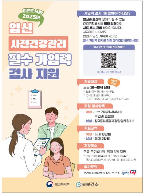 이선주 의료지원과장은 “가임력 검사를 통해 난임을 조기에 예방해, 건강한 임신 및 출산 환경 조성에 최선을 다하겠다.”라고 말했다.