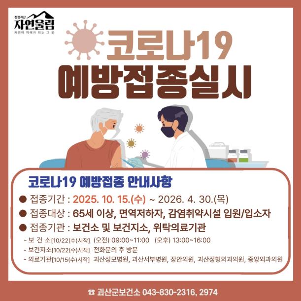 접종 기간은 15일부터 2026년 4월 30일까지이며, 접종 대상은 65세 이상 고령자, 면역저하자, 감염취약시설 입원·입소자 등이다.